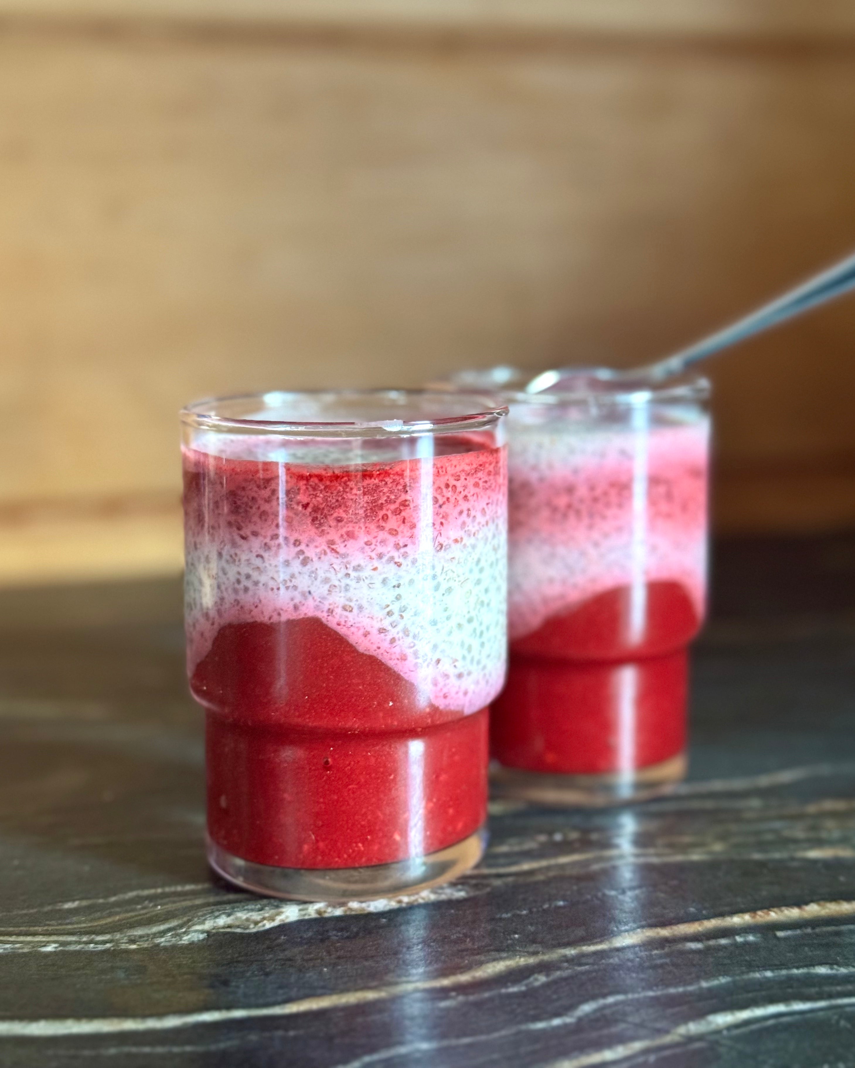 In addition to combining the wholesome goodness of chia and flaxseeds, this pudding incorporates the natural soothing properties of marshmallow root to feed the skin from inside out. Lightly sweetened and layered with a vibrant, tangy raspberry jam, it’s the perfect harmony of flavours and textures.
